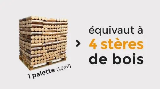TROIS PALETTE BÛCHES CONFORT PAS CHER – 312 packs de 5 bûches Environ 12 stères de bois traditionnel